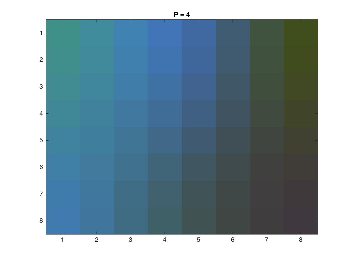 In this section, we essentially run our compression code three times, for the R, G, and B matrices respectively, then combine them to obtain a final compressed color image. Only the linear quantization matrix was used in this case. The video below shows how increments in \(p\) can slowly reduce image quality for \(p\) between 1 and 200: