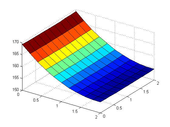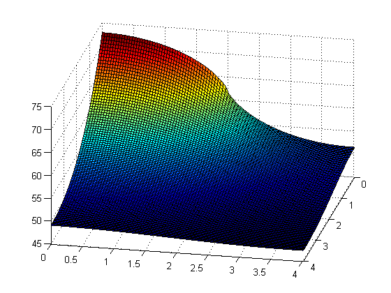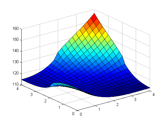 \(\star\)\(\star\) NOTE: For the entire project instead of using the mesh command as suggested in the book we used the surf command which gave us a better image to look at, and would look better from the projector.\(\star\)\(\star\)