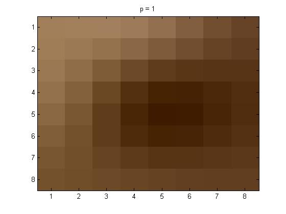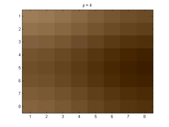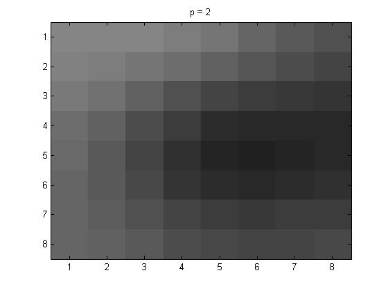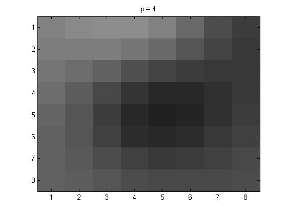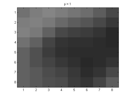 In this part of the project, for the 8 \(\times\)8 I used project5number5ad.m. The pictures below are as follows: line (1): original grayscale, line (2): p = 1, p = 2, and p = 4.