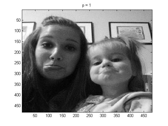 In this part of the project I used project5number5e.m, for the full picture, and I used p = 1, 2, 4, and 100 below are the pictures respectively: