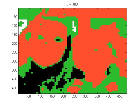 Again one can see that if we had not known what the original picture was, it would be really hard when p = 100 to identify the picture.