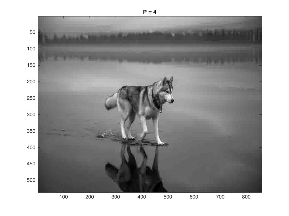 In this section, we essentially run our compression code three times, for the R, G, and B matrices respectively, then combine them to obtain a final compressed color image. Only the linear quantization matrix was used in this case. The video below shows how increments in \(p\) can slowly reduce image quality for \(p\) between 1 and 200: