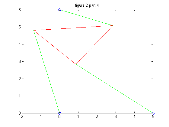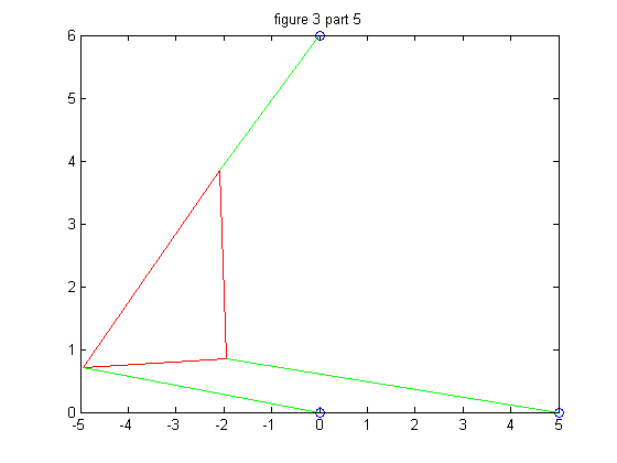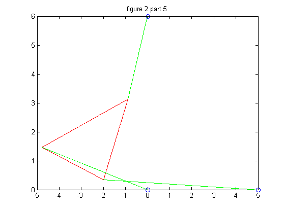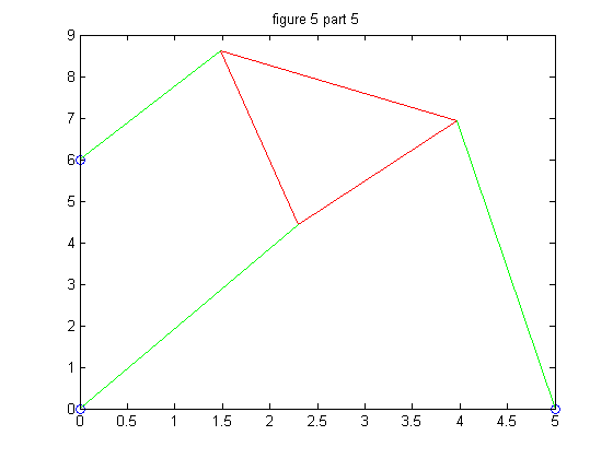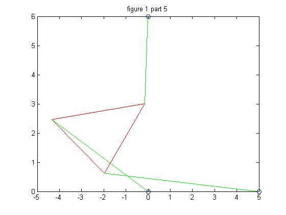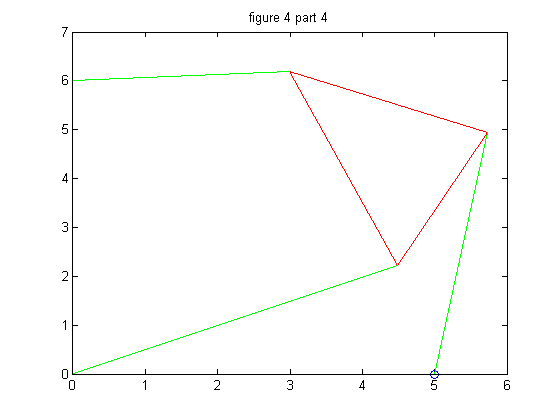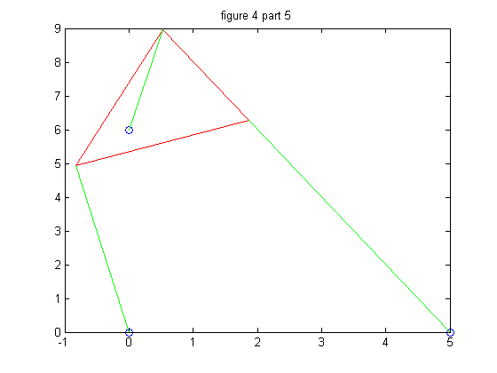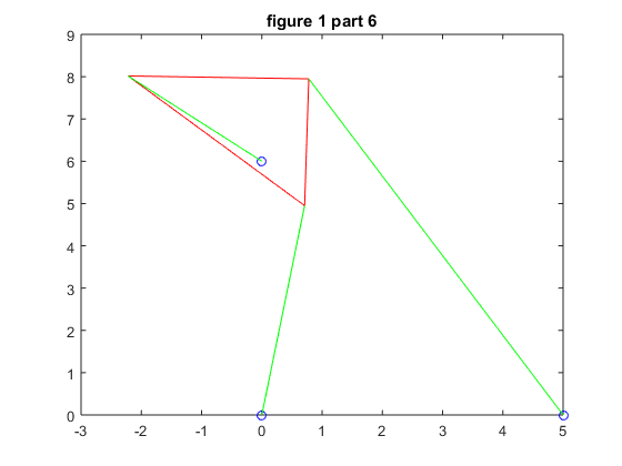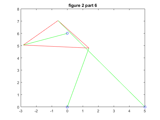 We repeat the process in part 4 but we must change the second strut length, p2, so that we wind up with 6 poses instead of 4. We chose p2 = 7.005 for our new strut length, and then followed through with the problem as before.