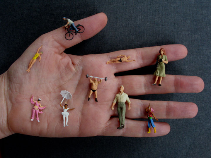 Jennifer photographs small toys that she places in real world environments, utilizing perspective (rather than digital manipulation or montage) to make them appear life size. Her images seem to capture both motion and emotion. By making inanimate figures look lifelike, her work explores the flip side of the common notion that the photographic gaze objectifies. However, toys are objects, highlighting that any emotion conveyed in these images is imposed by the photographer and the viewer, rather than the photographic subject itself.