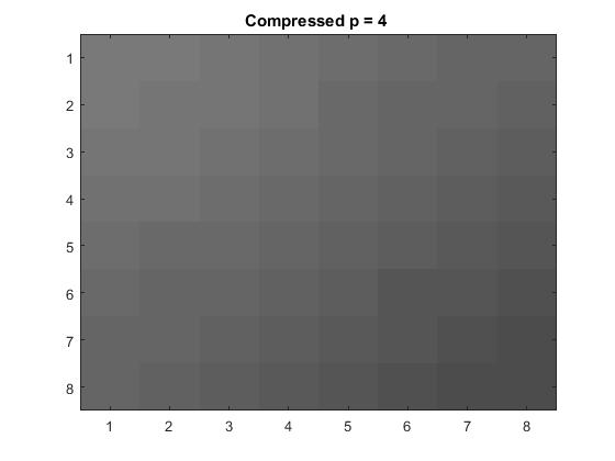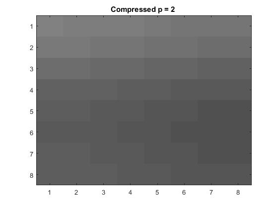 The quantization matrix Q calculates and assigns arbitrary number of bits allowed for each frequency.The loss parameter value is represented by \(p\). The larger this value the more information is lost to quantization. The method of 2D-DCT, (Discrete Cosine Transform) which reduces the number of bits representing each individual pixel on the image is applied to the original grayscaled 8x8 block in the quantization process. Then dequantization is used to reconstruct the block through inverse 2D-DCT.