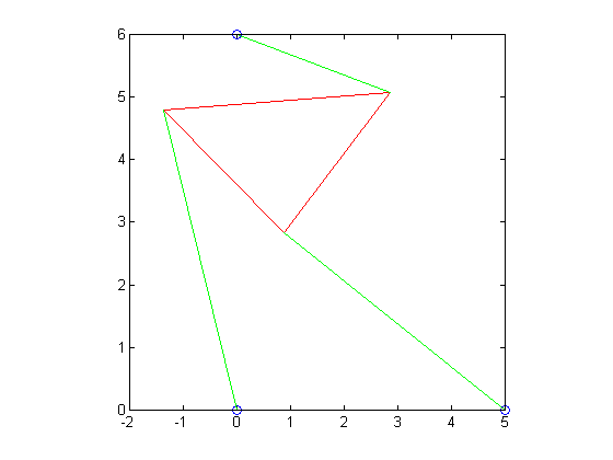 3. We used the plot command as instructed in the text to draw these pictures of the Stewart platform. In addition, we used axis square to force the plot to have a square aspect ratio, so that the plots have an accurate shape.
