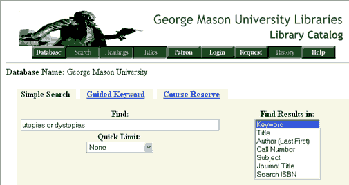 The GMU online catalog does not require you to capitalize the "or" in a Boolean search. |