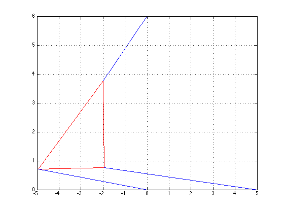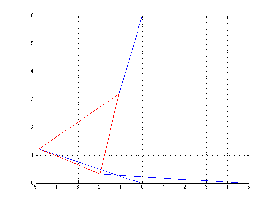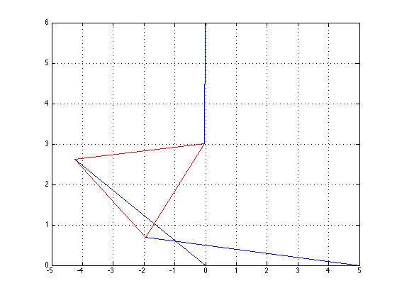specified by x1 = 5, (x2,y2) = (0,6), L1 = L3 = 3, L2= 3*sqrt(2), gamma = pi/4,